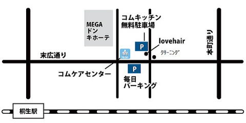 また、クリーニングホシノ様を曲がって左手のコムキッチンの砂利駐車場も