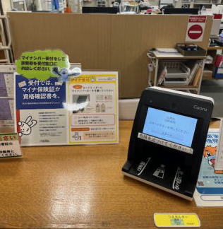受付にて専用の端末により、オンライン資格確認や薬剤情報等の提供に同意される場合は、