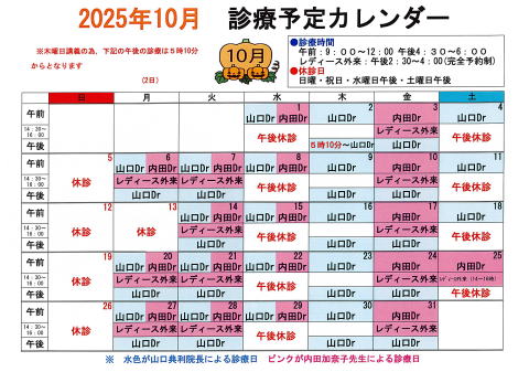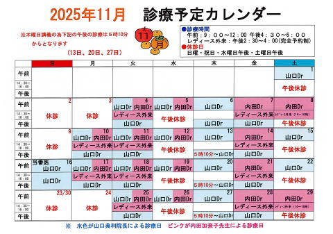 内田先生の土曜日外来の14:00〜16:00も「レディース外来」を行っています。